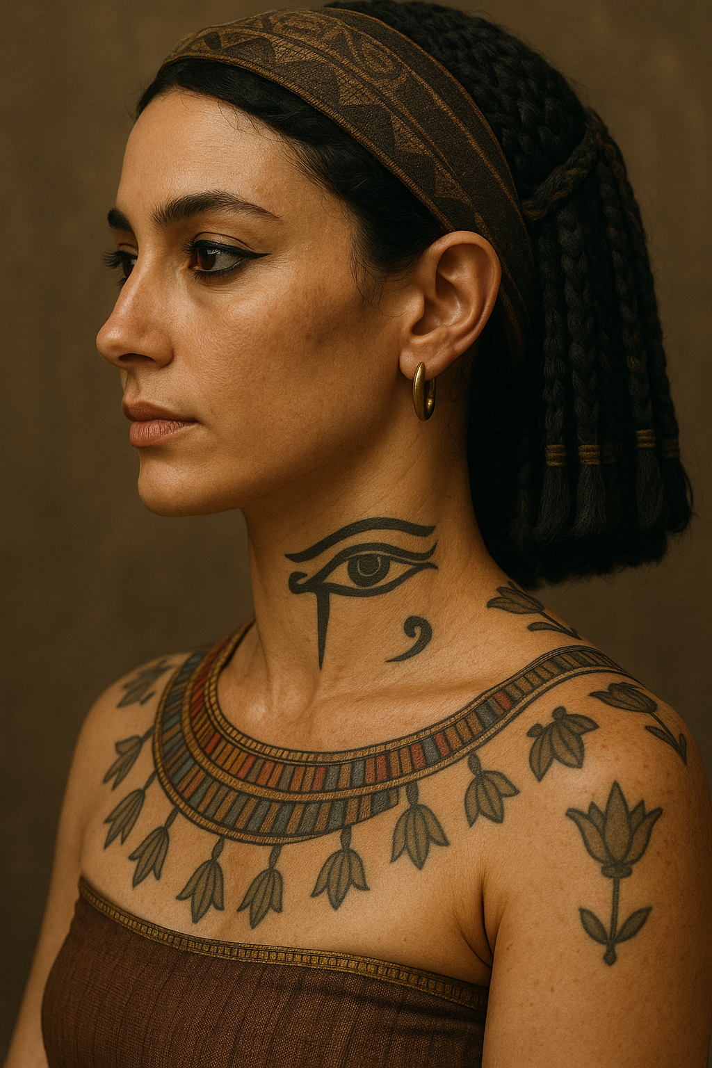 В Древен Египет, още през Средното царство (около 2040-1782 г. пр.н.е.), татуировките били използвани като амулети за защита и израз на религиозни вярвания. Жените, особено тези от висшето общество, били татуирани с мотиви като Окото на Хор върху шията и раменете, символизиращи благословия и защита.